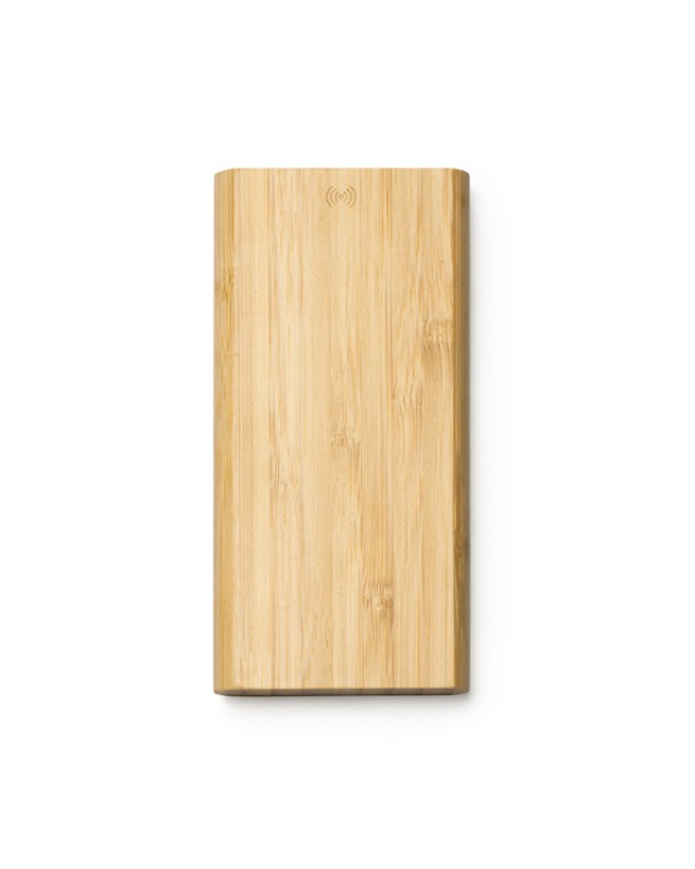 Batteria esterna da 6000 mAh con funzione di ricarica wireless, realizzata con involucro in bambù. Uscita corrente DC5V/2,1A, wireless DC5V. Include cavo di tipo C. - Misure: [7,5cm/14,5cm/1,6cm] - Composizione: Natural bamboo. - Confezione in scatola di design ecologico.Batteria esterna da 600 mAh.Include un cavo di ricarica di tipo C.Manuale di istruzioni in 6 lingue: spagnolo, inglese, francese, italiano, tedesco e portoghese.