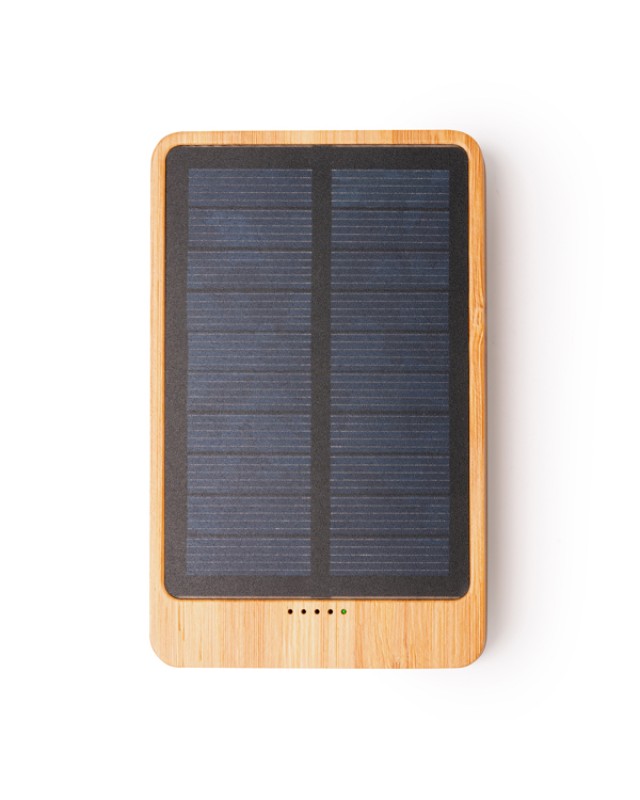 Power bank a energia solare da 5.000 mAh in bambù. Ingresso di tipo C. Un'uscita di tipo C e due uscite USB. Confezione in scatola di design ecologico. - Misure: [10cm/6,1cm/1,5cm] - Composizione: Bambú - Tipo de batería: Polímero de litio Capacidad: 4000mAhVoltaje de entrada: 5V/2.1AVoltaje de salida: 5V/2.1ATiempo de carga: 3-4 horasPresentación en caja diseño eco.