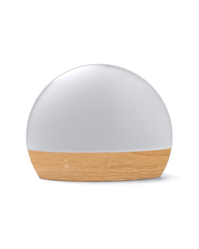 Lampada sveglia in ABS riciclato con modalità di illuminazione progressiva. Funzionalità: ora, data e temperatura. Luce a LED in diversi colori. Cavo incluso. Confezione in scatola dal design ecologico. - Misure: [18,5cm/14,4cm/6,6cm] - Composizione: Recycled ABS. - Presentation in eco design box. 15 LEDS Input 5V/2AOutput 5V/1A