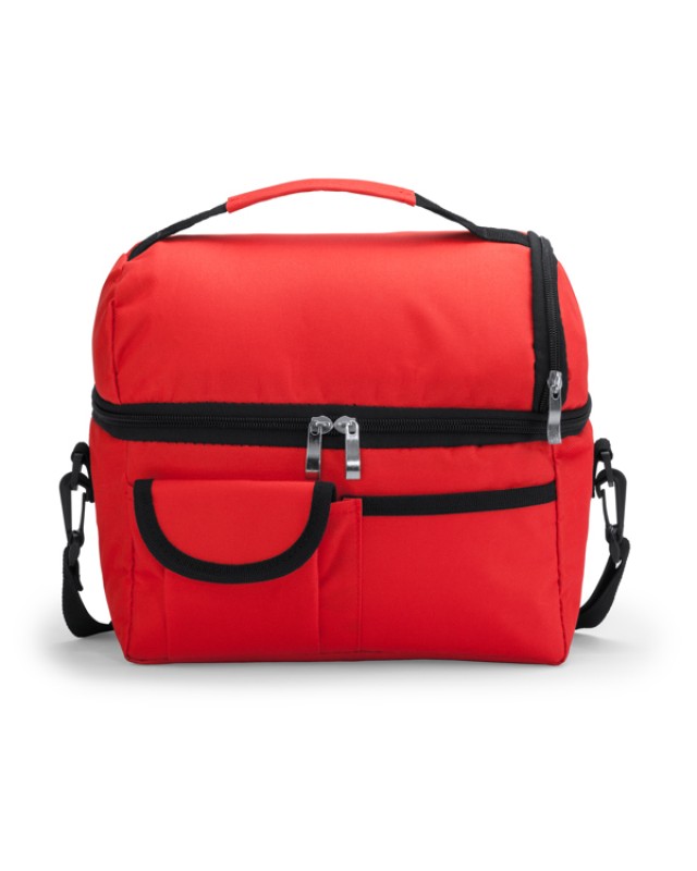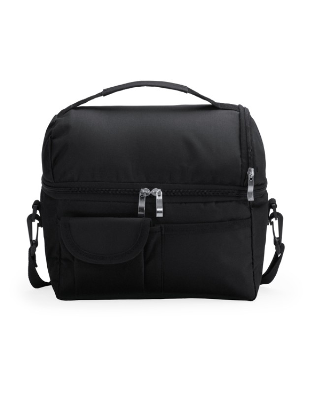 Borsa termica multiuso in poliestere 600D. Scomparti interni isotermici e pratiche tasche esterne. Nastro tracolla regolabile trapuntato con moschettone. Borsa isotermica ideale per portare il pranzo al lavoro. - Misure: [25cm/24cm/15cm] - Composizione: Poliestere 600D