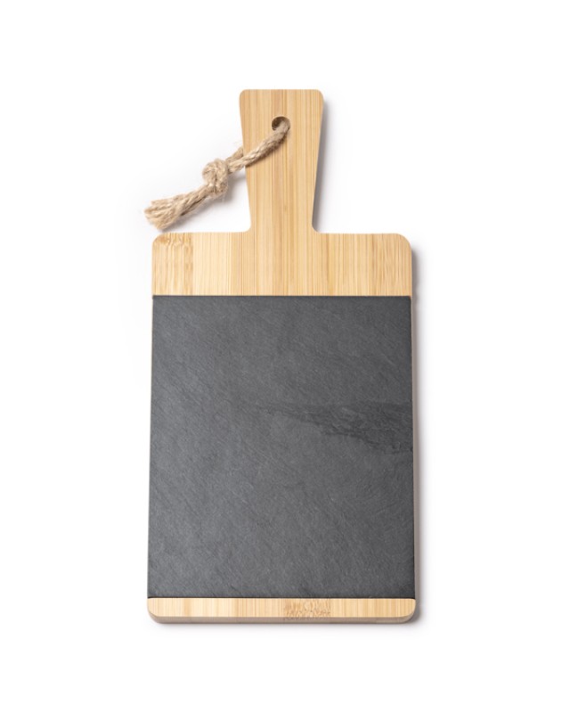 Il tagliere in bambù e ardesia è uno strumento versatile e funzionale per la cucina. Il suo design combina la bellezza e la durata del bambù con la praticità dell'ardesia, offrendo un utensile ideale per tagliare e presentare i cibi.Il corpo del tagliere è realizzato in bambù, un materiale resistente e sostenibile che offre una superficie di taglio robusta e sicura. Il bambù è noto per la sua naturale resistenza all'umidità e ai batteri, che lo rende una scelta igienica e duratura per la preparazione dei cibi.L'ardesia incorporata nella lavagna permette di far risaltare i prodotti da presentare. Inoltre, è dotato di un'impugnatura ergonomica che lo rende facile da maneggiare e trasportare. La corda in dotazione consente di appendere il tagliere quando non viene utilizzato, risparmiando spazio e tenendolo a portata di mano. Questo tagliere è ideale sia per l'uso domestico che per i regali, poiché combina funzionalità e stile in un unico utensile da cucina. - Misure: [33cm/15cm/1cm] - Composizione: Bambú y pizarra. - Presentación en caja diseño eco.