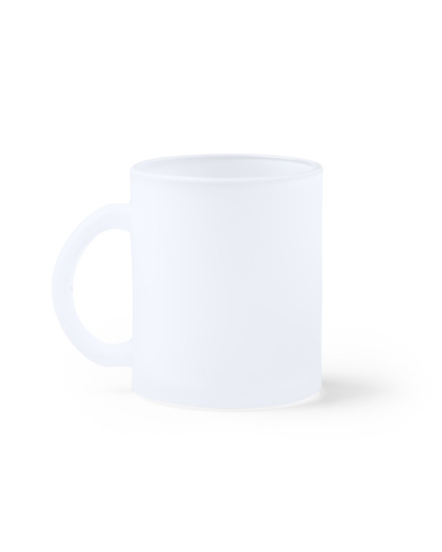 Tazza in vetro da 350 ml con finitura glassata. Specifica per la sublimazione. Confezione in scatola. - Misure: [9,8cm/7,9Ø] - Composizione: Cristal - Presentación en caja.