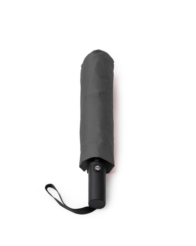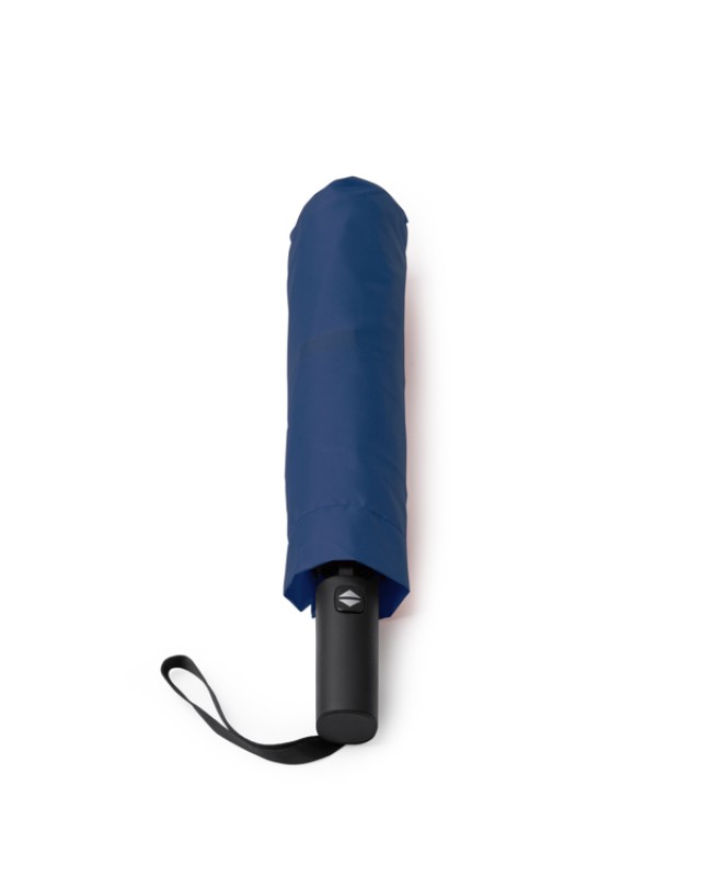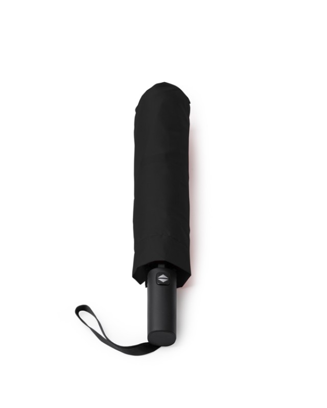 Ombrello pieghevole da tempesta con apertura automatica e manico in gomma. Tessuto pongee 190T con custodia abbinata. Stecche in fibra di vetro nera. - Misure: [97Ø]