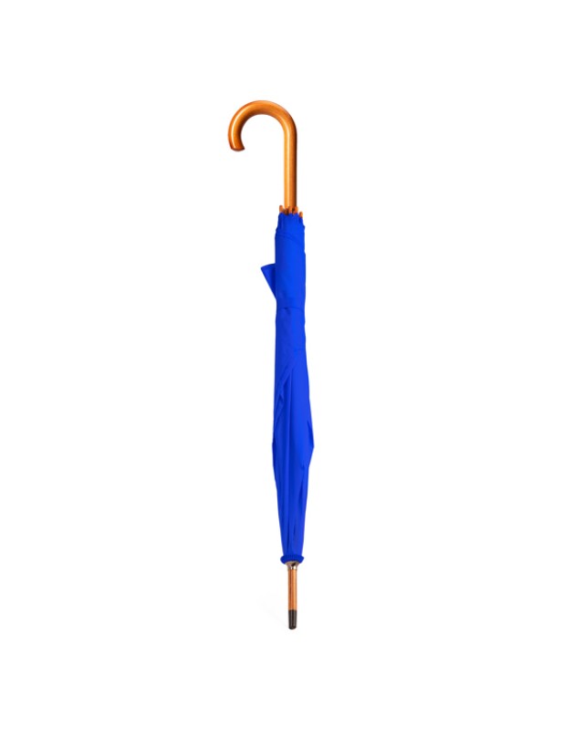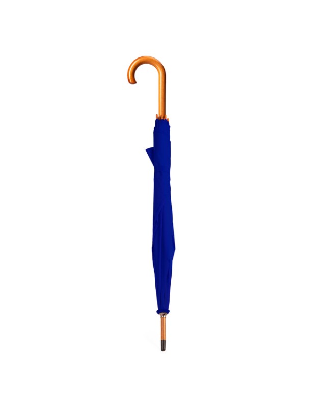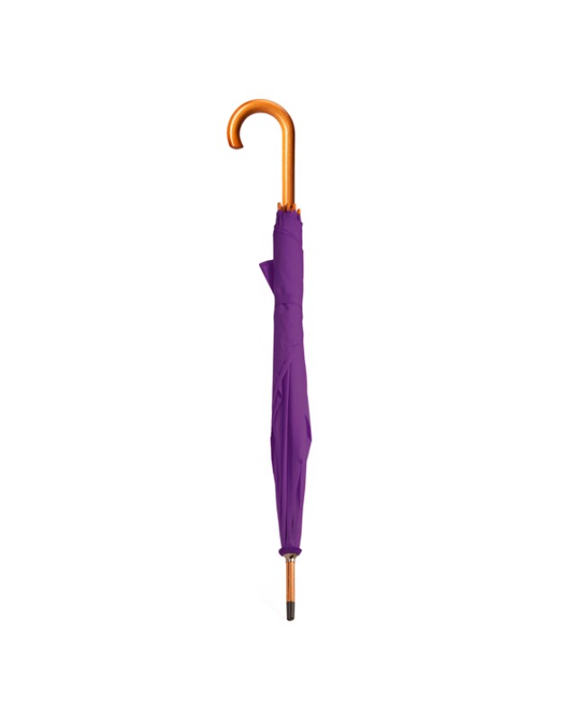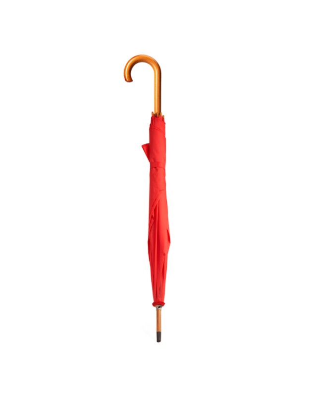Ombrello con manico, asta e punte in legno. Sezioni in nero. Chiusura a velcro abbinata. Apertura manuale. Diametro 105 cm. - Misure: [90cm/105Ø] - Composizione: Poliestere 190T, metallo e legno.