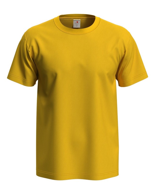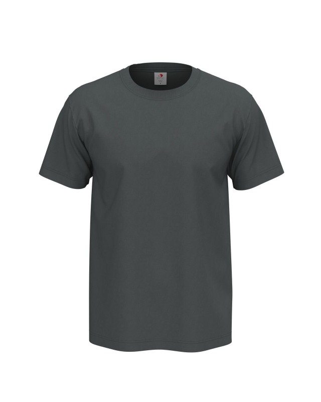 100% cotone ring-spun single jersey. T-shirt manica corta girocollo, nastro di rinforzo alle spalle, struttura con busto tubolare, lavabile a 40°. Col. GYH: 85% cot. 15% visc.