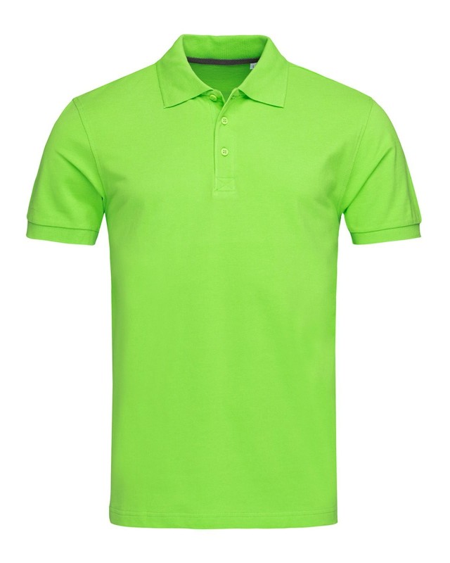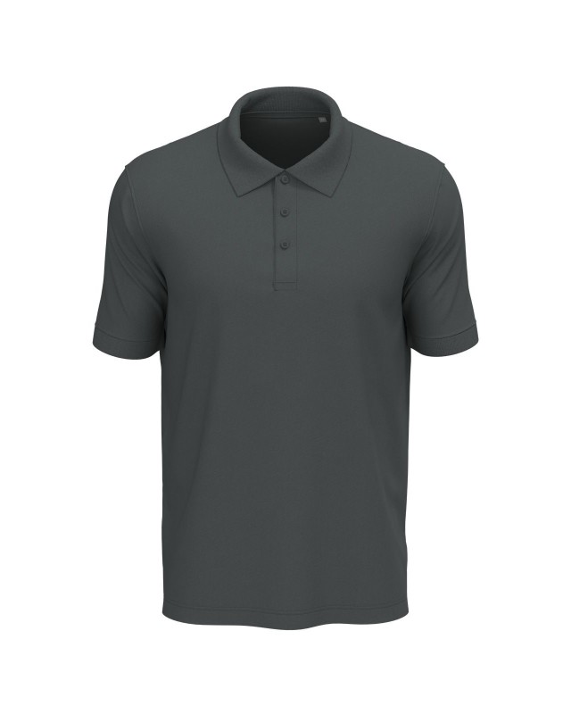 100% cotone ring-spun, piqué. Polo a maniche corte set-in, 3 bottoni tono su tono, colletto e polsini a costine, struttura con cuciture laterali. Col. GYH: 85% cot. 15% vis.