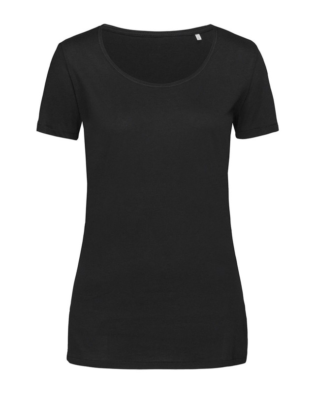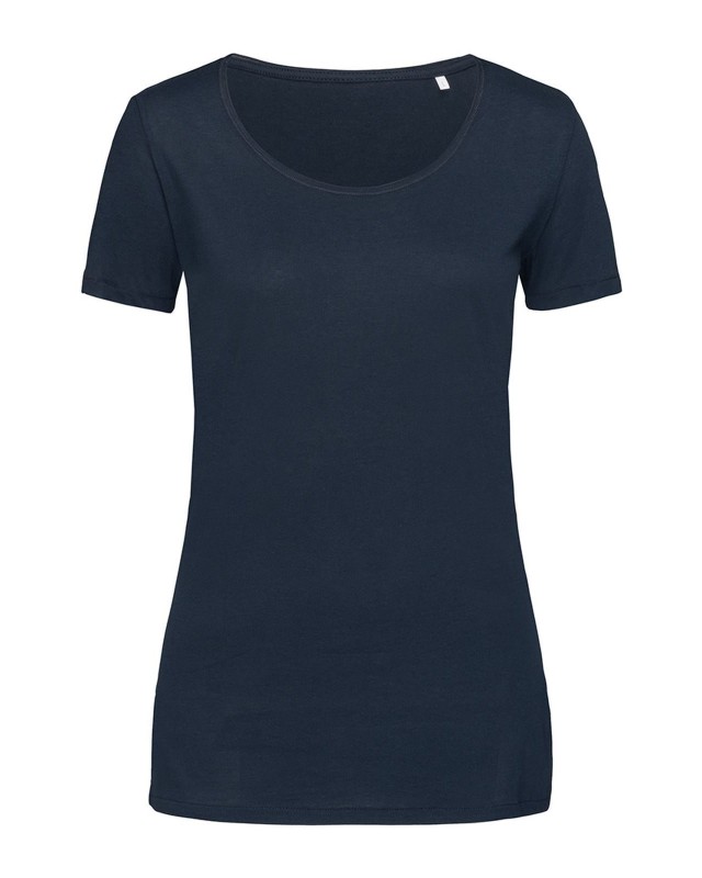 100% cotone ring-spun. Single jersey. T-shirt manica corta girocollo, collo rollino nello stesso tessuto, struttura con cuciture laterali, leggermente sfiancata, etichetta strappabile, lavabile a 40°C.