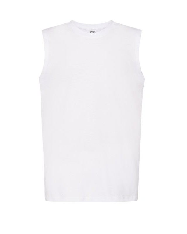 Single Jersey; Doppia cucitura su collo, giromanica e girovita Composizione: 100% cotone. Peso: 155 gr/m2. Vestibilità: regolare. Etichetta: rimovibile.