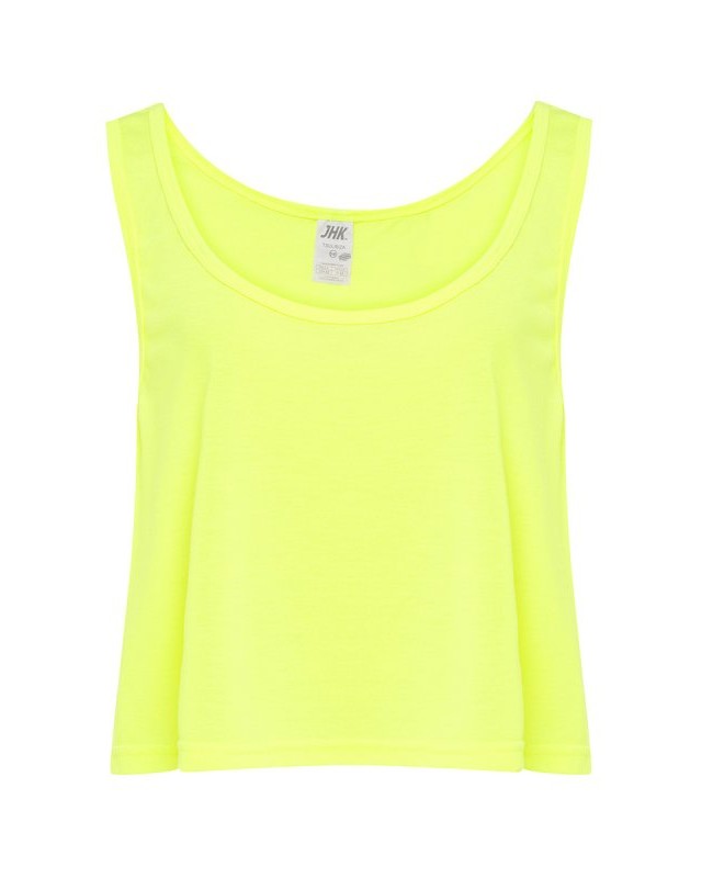 Canotta larga con scollo rotondo; Single Jersey; Fluor - 100% Poliestere; Etichetta rimovibile Composizione: 100% cotone. Peso: 120 gr/m2. Vestibilità: ampia. Busto: cuciture laterali. Etichetta: rimovibile.