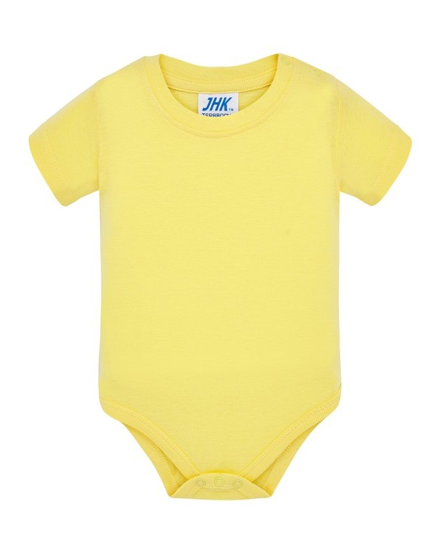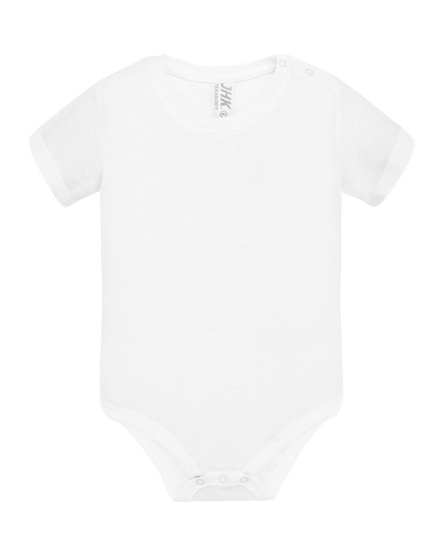 Body bimbo manica corta; Collo in lycra; Bottoncini sulla spalla e inferiori; Costina 1x1 Composizione: 100% cotone. Peso: 170 gr/m2. Vestibilità: regolare. Busto: cuciture laterali. Etichetta: rimovibile.