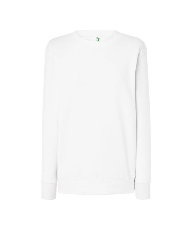 Felpa da donna in tessuto leggero French Terry; Doppia cucitura su collo, polsini e fondo; Costine 2x1 polsini e fondo in lycra Composizione: 60% cotone + 40% poliestere. Peso: 240 gr/m2. Vestibilità: regolare. Busto: cuciture laterali. Etichetta: rimovibile.