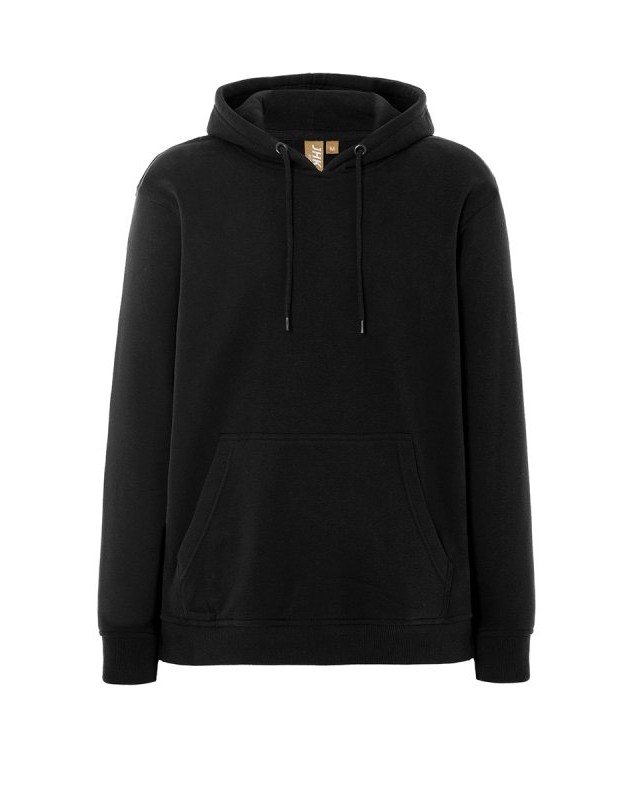 Felpa con cappuccio unisex in cotone organico e poliestere riciclato; Cordino piatto e cappuccio in tinta; Tascone a marsupio; Costina 2x1 con lycra su polsini e girovita con elastan Composizione: 80% cotone + 20% poliestere. Peso: 275 gr/m2. Vestibilità: regolare. Busto: cuciture laterali. Etichetta: rimovibile.