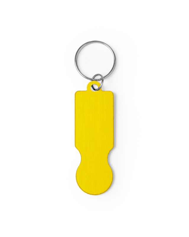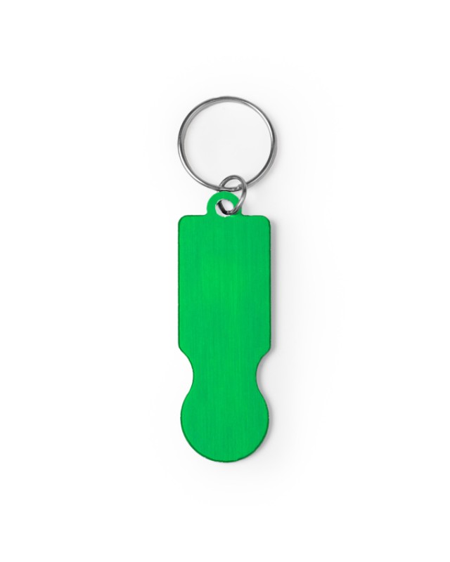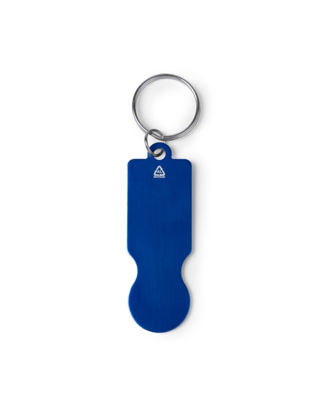 Portachiavi in alluminio riciclato con moneta per carrello della spesa. Ampia area di stampa. - Composizione: Alluminio riciclato - Misure: 9,5cm/0,7cm/2,3cm