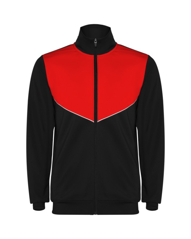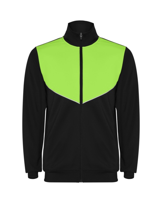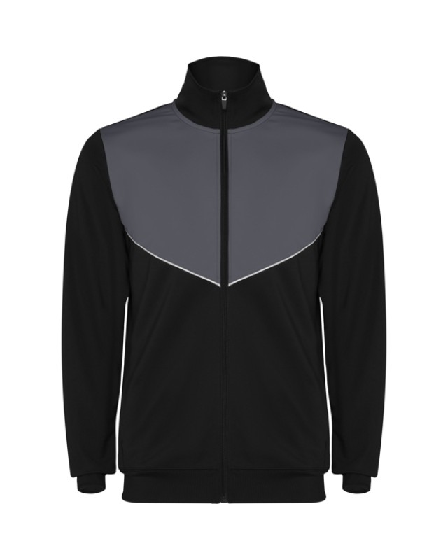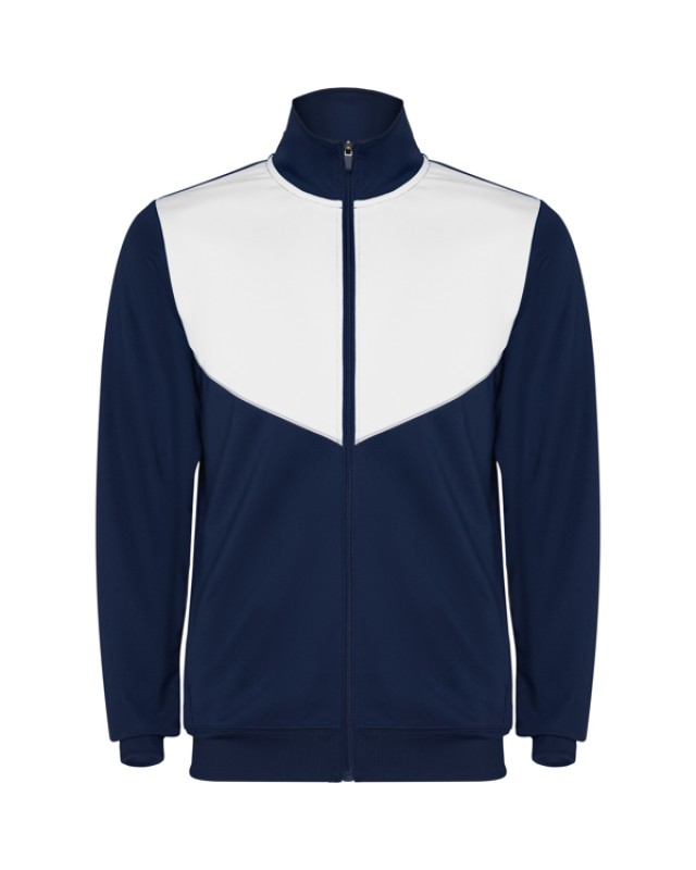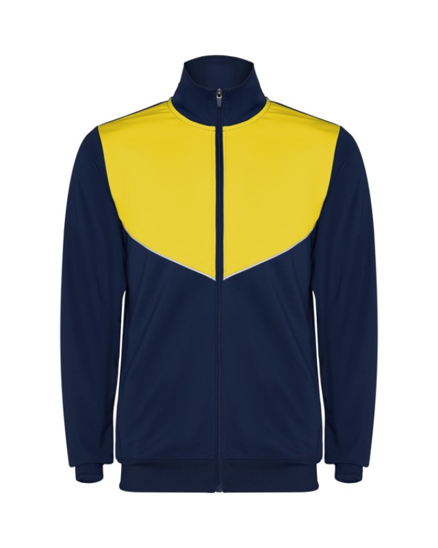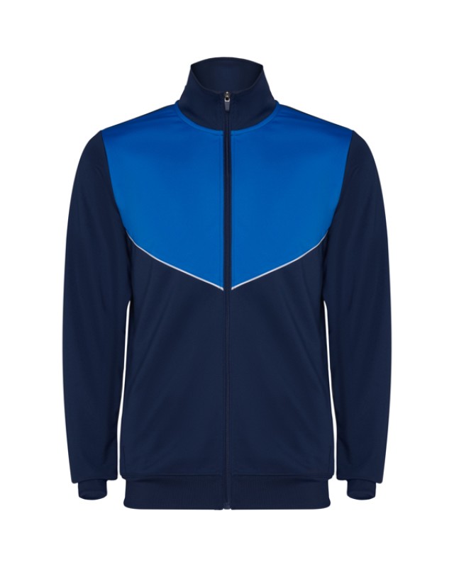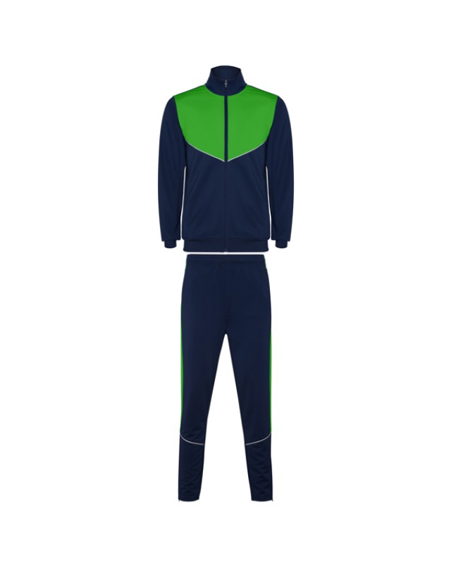 Tuta da ginnastica in leggero tessuto elasticizzato.· Giacca con colore a contrasto e cucitura sul petto.· Collo alto con cuciture a contrasto.· Cerniera centrale· Tasche laterali.· Polsini e vita a costine 2x2.· Pantaloni con vita elastica e cordoncino. · Parte laterale a contrasto con bordi di cucitura. · Orlo con cerniera. - Genere: Uomo - Composizione: 100% poliestere interlock, 225 g/m². - *Etiqueta removible - Misure: 51cm/70cm·36cm/101cm