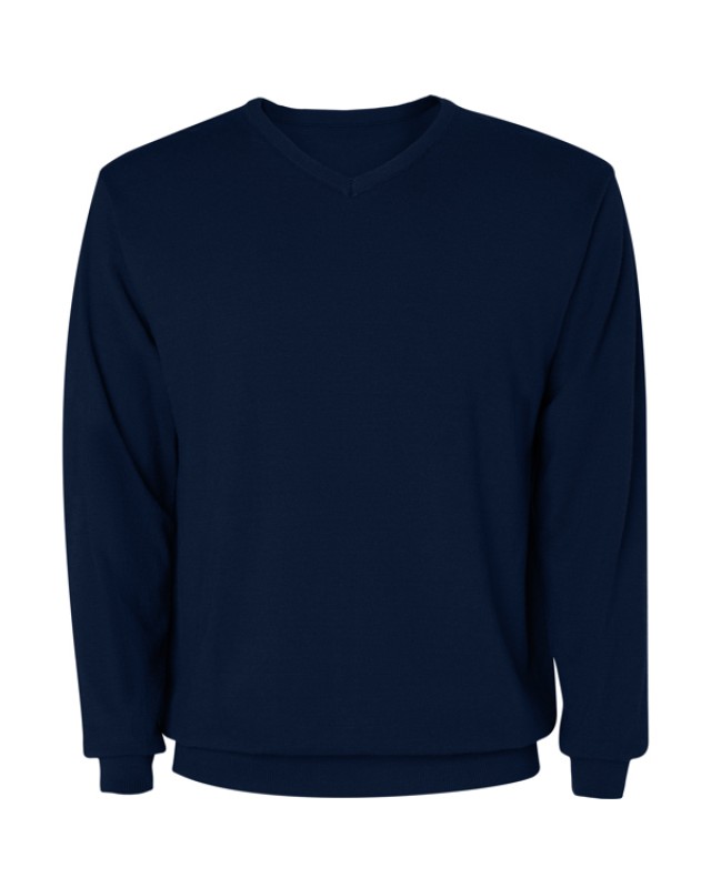 Maglioncino da uomo a tessitura fine con scollo a V. Collo, polsini e orlo a costine tono su tono 1x1. - Genere: Uomo - Composizione: 50% viscosa / 28% poliestere / 22% poliammide, GG12 - Misure: 52cm/68cm