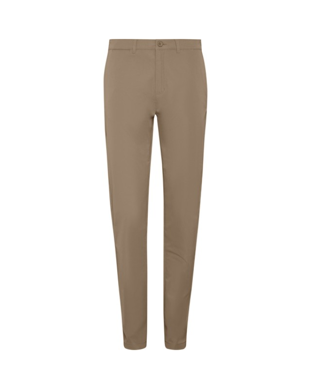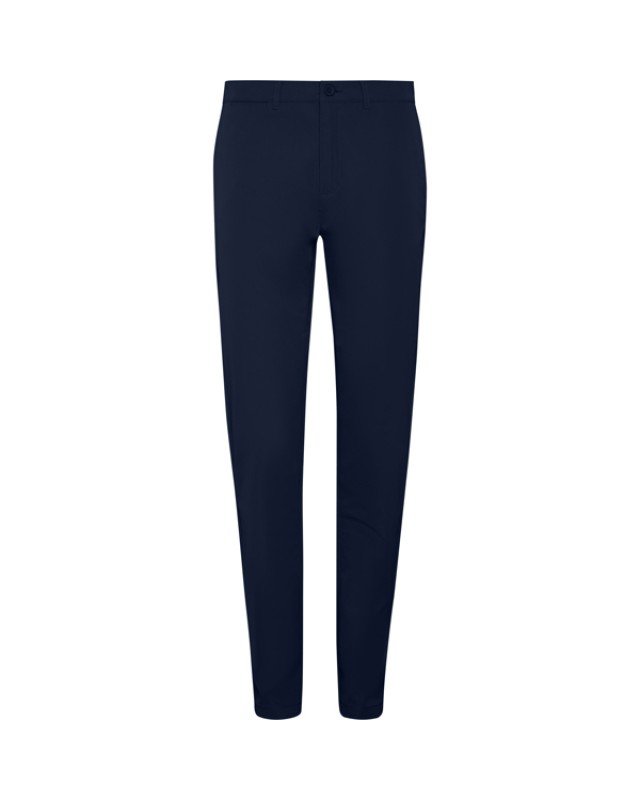 Pantaloni lunghi da donna.· Chiusura con cerniera e bottoni. · Passanti per cintura. · Tasche laterali.· Tasca anteriore destra portamonete. · Tasca posteriore destra con bottone. - Genere: Donna - Composizione: 70% poliestere / 37% elastomultiestere, 200 g/m². - Misure: 37cm/104.5cm