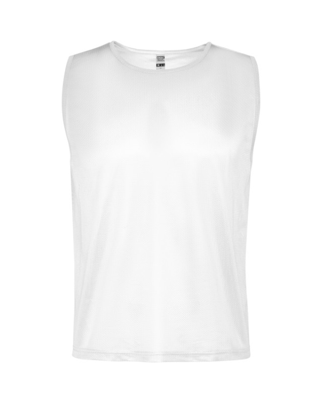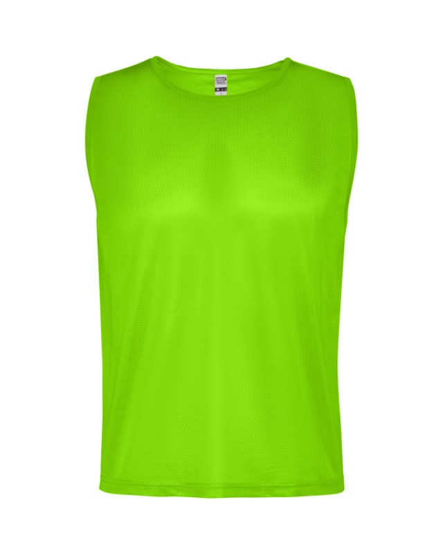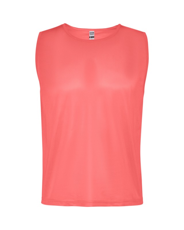 Pettorine sportive traspiranti unisex.· Bordo cucito con lo stesso tessuto del giromanica e sul collo. · Doppia cucitura sull'orlo. - Genere: Unisex - Composizione: 100% maglia di poliestere, 90 g/m² - Misure: 56cm/64cm