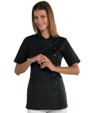 La casacca Nizza è una camicia da donna con bottoni a mezza manica nero. Per settore medicale, estetico e sanitario. Ideale come divisa da lavoro per medico ed infermiere. Collo alla coreana, con 2 tasche e allacciatura laterale. Poliestere Cotone Mezza Manica. Peso: 195 Gr/m². Composizione: 65% Poliestere 35% Cotone. Bottoni a pressione
