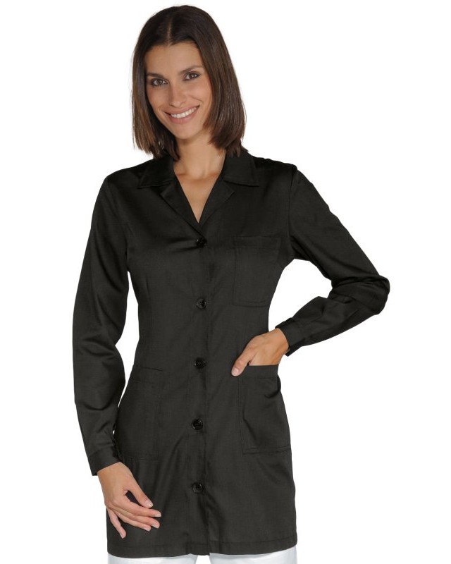 La casacca Marbella è una camicia da donna a manica lunga nero. Ottima per settore medico, sanitario, estetico e alimentare. Ideale per divisa da lavoro per aziende di servizi. Con martingala sulla schiena, chiusura con bottoni, collo a lancia,con 2 tasche ed un taschino. Poliestere Cotone Manica Lunga. Peso: 125 Gr/m². Composizione: 65% Poliestere 35% Cotone. Bottoni con asola - colorato
