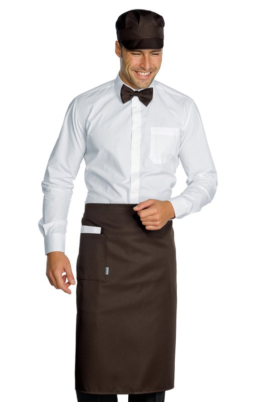 Grembiule Dakar 100x70 con tasca cacao. Ideale per settore alberghiero e parannanza per ristorazione da sala(cameriere). Divisa da lavoro per bar, pub, ristoranti, alimentari, cucine, cuoco e catering. Con lacci lunghi 90 cm in tessuto. Poliestere Cotone. Peso: 195 Gr/m². Composizione: 65% Poliestere 35% Cotone. Colorato 195 gr/m²
