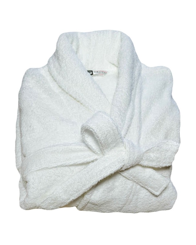 100% cotone. Accappatoio senza cappuccio, ad asciugatura rapida, collo a scialle. Tipo di personalizzazione: ricamo.