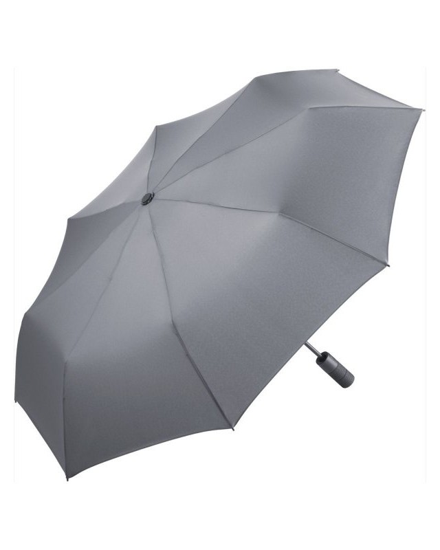 Copertura: 100% poliestere, manico: plastica, asta: acciaio. Ombrello mini con apertura e chiusura automatica, stecche flessibili in fibra di vetro con giunture grigie, manico nero soft-touch con copertura con bottoncino. Diametro: 97 cm, lunghezza da chiuso: 31 cm, 8 pannelli.
