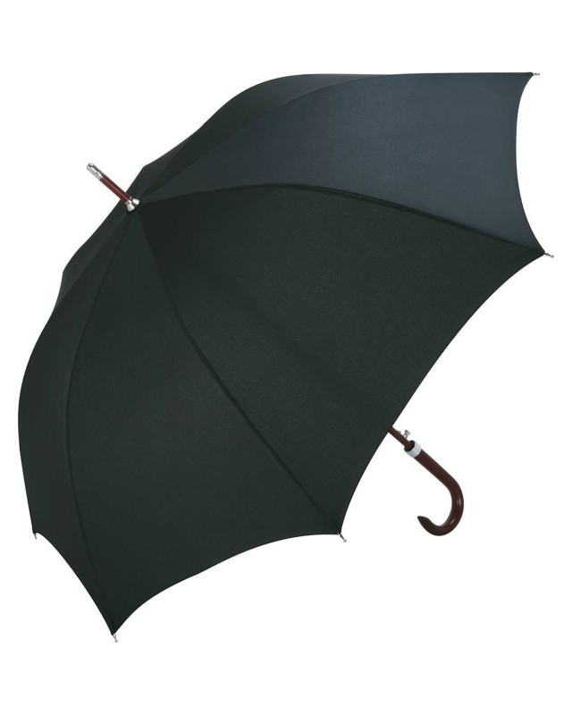 Bastone in vero legno massiccio marrone scuro, confortevole funzione automatica per un'apertura rapida, stecche in fibra di vetro flessibilità, proprietà Windproof per un'elevata stabilità del telaio e una migliore resistenza contro il vento, proprietà della fodera idrofughe e autopulenti grazie al rivestimento in tessuto DuPont™ Teflon® originale, bellissimo manico a forma di uncino tondeggiante in vero legno. Diamero: 120 cm, lunghezza da chiuso: 100 cm, 8 pannelli.