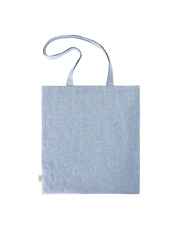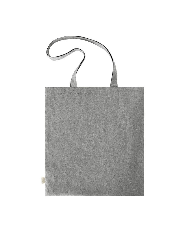 100% cotone pre-riciclato. Shopper con manici lunghi. Dimensioni: 38x42 cm. Area personalizzabile: frontale 28x31 cm.
