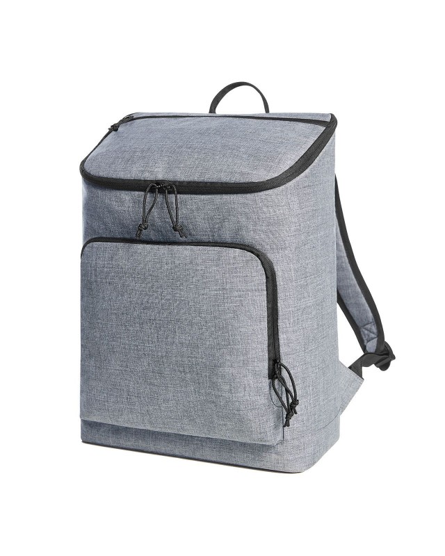 100% poliestere 600D. Zaino frigo con ampio scomparto principale, tasca a rete interna con chiusura lampo per piastre eutettiche, tasca esterna con zip sulla patta coperchio, schienale e spallacci imbottiti di lunghezza regolabile. Dimensioni: 30 x 42 x 15 cm. Area di stampa sulla patta:17 x 9 cm, sulla tasca anteriore: 19 x 15 cm