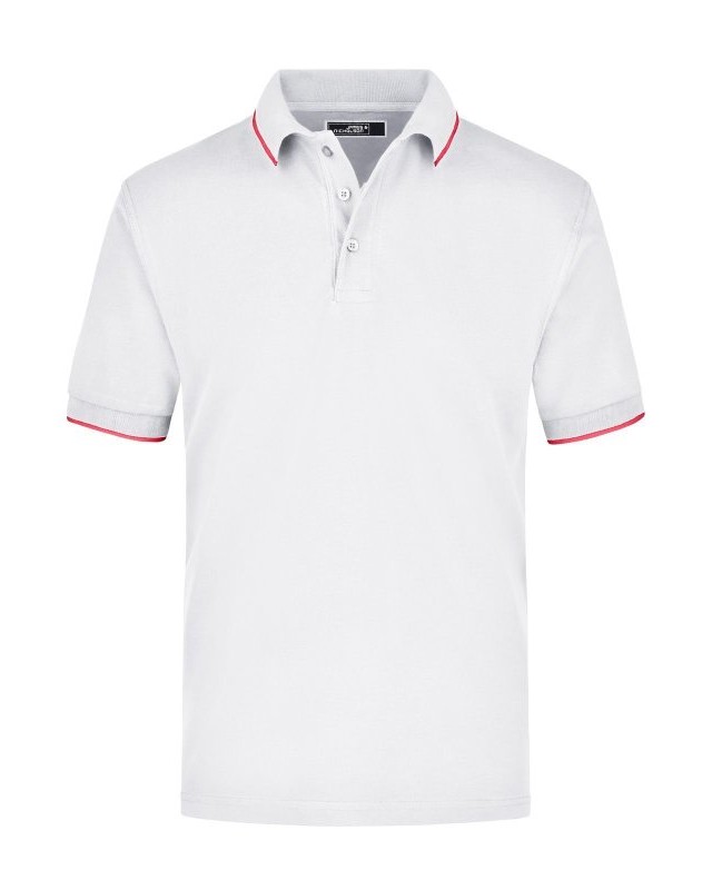 100% cotone. Polo in piquè di qualità con bande a contrasto. Tessuto piqué finemente strutturato di alta qualità. Colletto polo e giromanica lavorati. Inserto a mezzaluna sulla nuca, Cuciture laterali. Necktape, bottoni tono su tono. Doppie cuciture sulle spalle, sulle maniche e sull'orlo, Tessuto esterno (210 g/m²). Manica corta, policromo, Spacchetti laterali