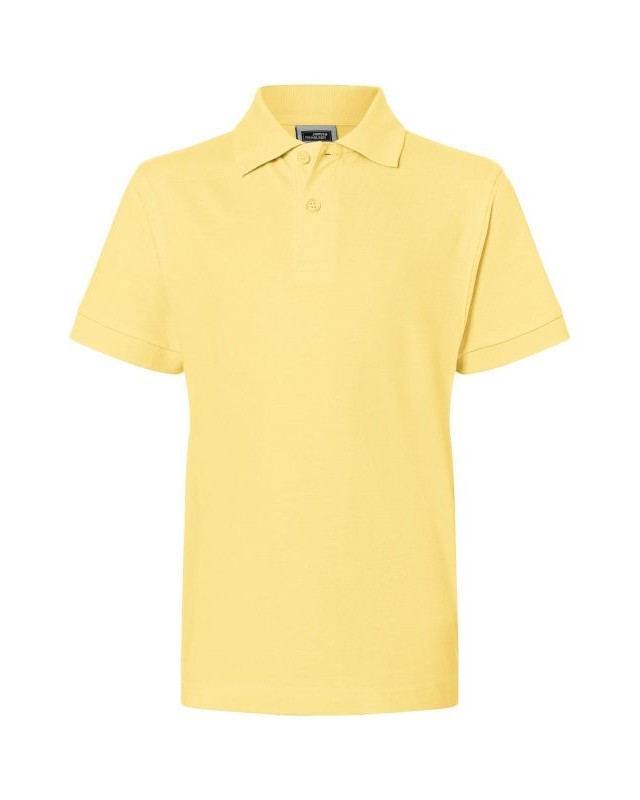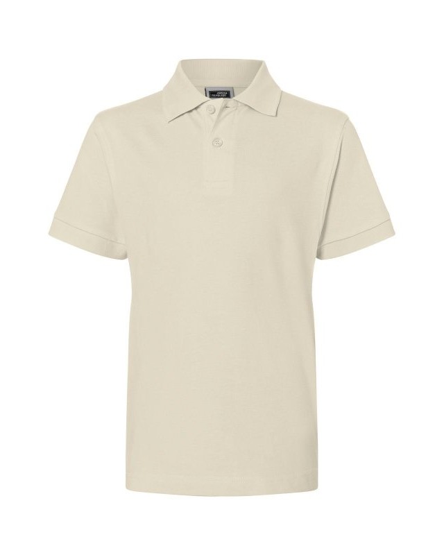 100% cotone filato ad anello pettinato, piqué strutturato. Taglio sportivo con spacchetti laterali, bottoni tono su tono, cuciture doppie sulle spalle e sul giro manica. Gr 190-200