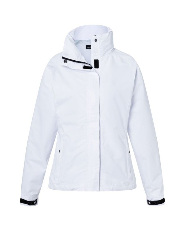 100% poliestere. Giacca funzionale per condizioni meteo estreme, Tessuto antivento e idrorepellente (3.000 mm colonna d'acqua) con strato in PU. Cuciture sigillate, Traspirante e permeabile al vapore (3.000 g/m² /24h), leggermente sciancrata. Colletto con cappuccio integrato, 2 tasche nascoste con cerniera , taschino e tasca interna portacellulare, Cordino elastico con stopper su cappuccio e in vita, Cerniera sulla schiena per ricamo, Tessuto esterno: 100% poliestere, Fodera: 100% poliestere, Fodera in rete, Raglan, Colonna d'acqua 3.000 mm, antivento e idrofugo