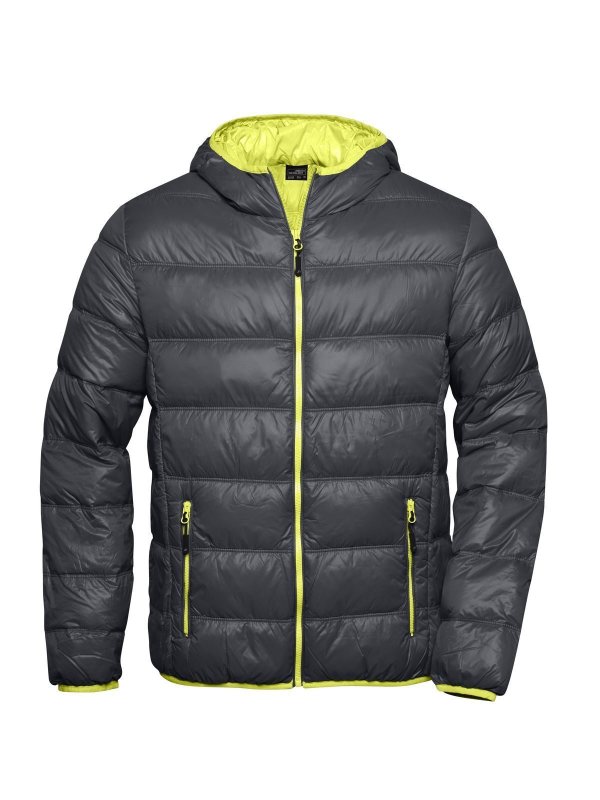 100% poliammide. Parte esterna e fodera: 100% poliammide. Imbottitura: 90% piuma, 10% penna. Piumino ultraleggero, con cappuccio in stile casual, soffice, leggero, tessuto antivento, impermeabile. Doppie cuciture, 2 tasche laterali con cerniere e due tasche interne.