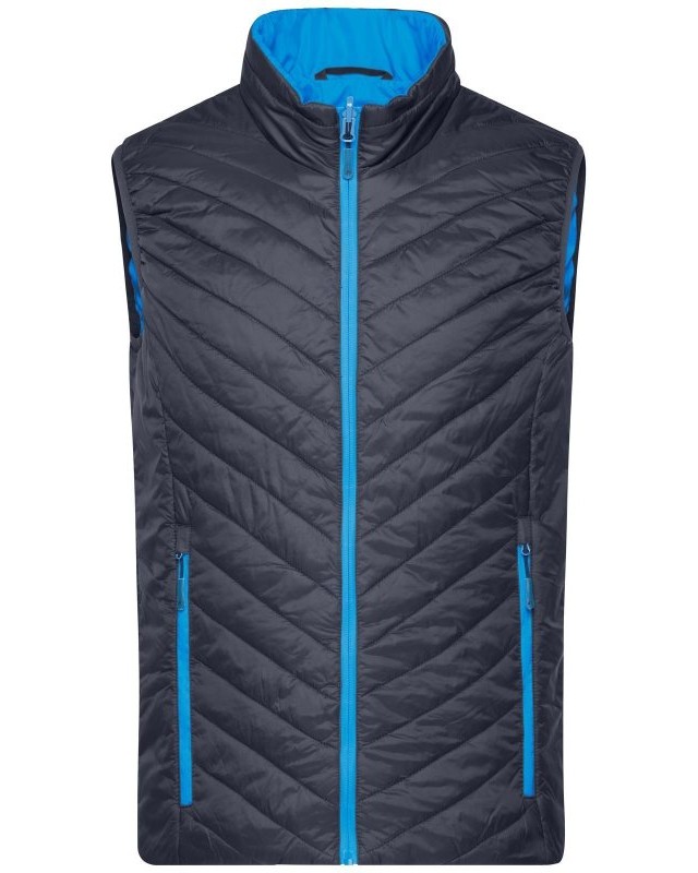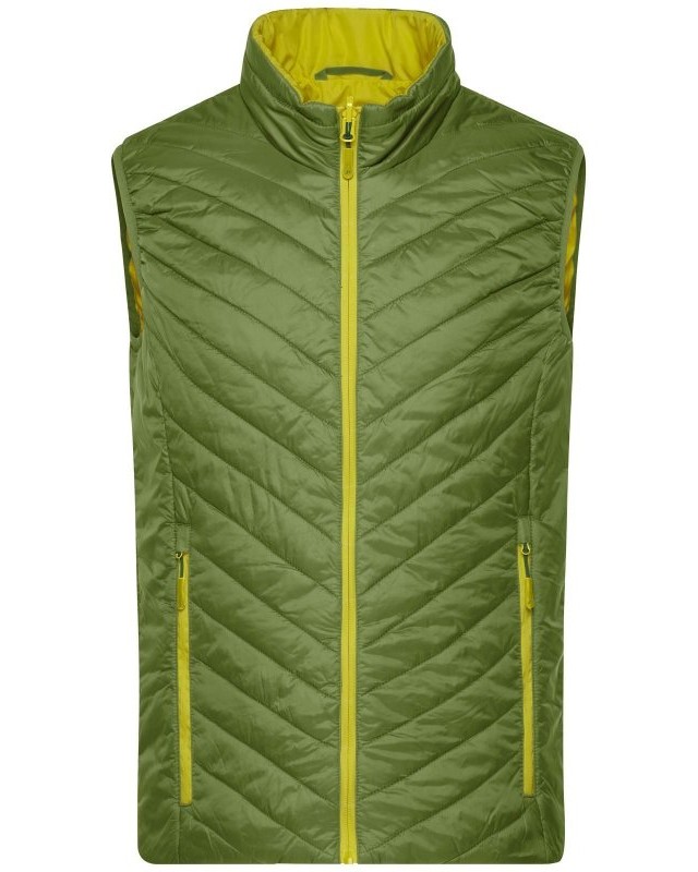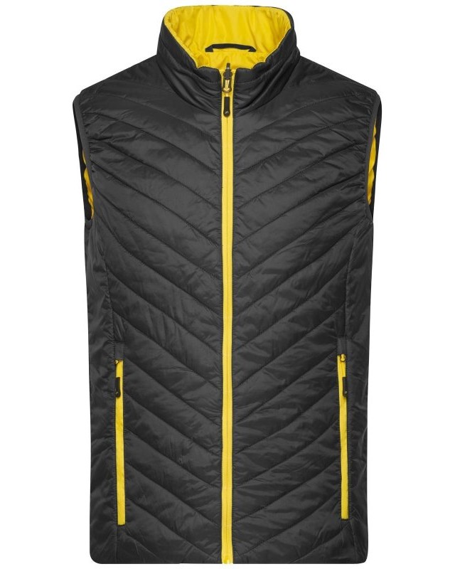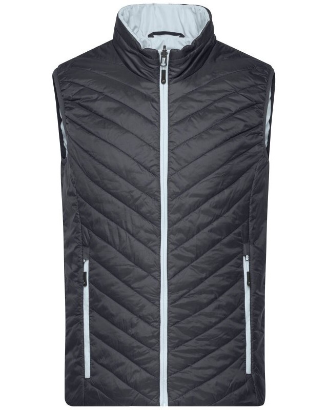 100% poliammide. Tessuto esterno: 100% poliammide. Imbottitura in ovatta DuPont: 100% poliestere. Gilet smanicato, reversibile, leggero, trapuntato da un lato e liscio dall'’altro. Può essere faclmente richiuso nella tasca interna. Polsini elastici, due tasche sia all'esterno che all'’interno.