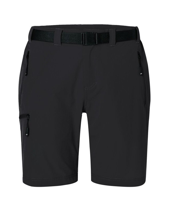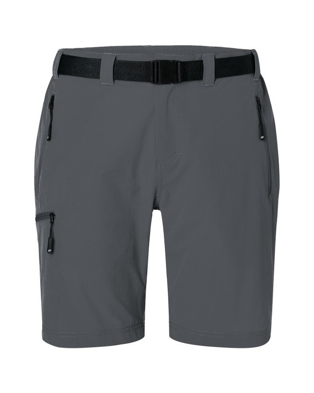 85% poliammide, 15% elastan. Pantaloncini da trekking, tessuto leggero, robusto e bielastico, idrorepellente e antimacchia grazie al BIONIC-FINISH®ECO, ad asciugatura rapida, parzialmente elastici in vita con passanti per cintura, 2 tasche laterali, 1 tasca posteriore, 1 tasca sulla gamba, tutte le tasche con cerniere.