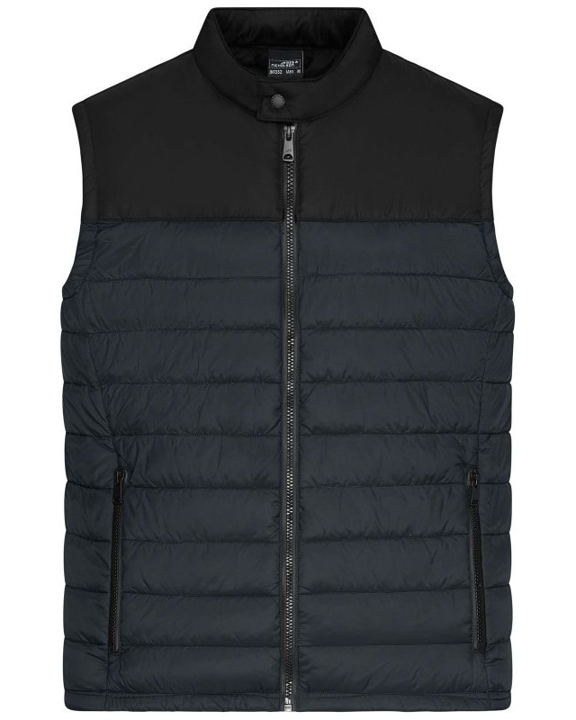 100% poliestere (riciclato). Pratico materiale in poliestere riciclato, idrorepellente e antimacchia grazie al BIONIC-FINISH®ECO, imbottitura antifreddo sorona®AURA, non trapuntato nella parte anteriore e posteriore per una facile stampa o ricamo, zip a tutta lunghezza, collo alto con bottone a pressione, 2 tasche laterali con zip, 1 tasca interna con zip, zip: YKK