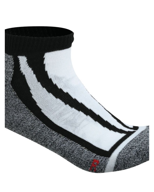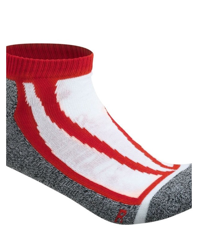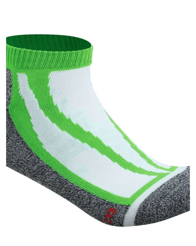 84% poliestere, 15% poliammide, 1% elastan. Calzino sneaker funzionale e sportivo, traspirante con taglio destro/sinistro ergonomico.