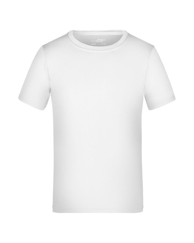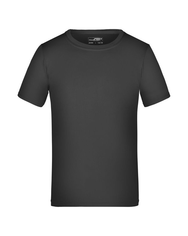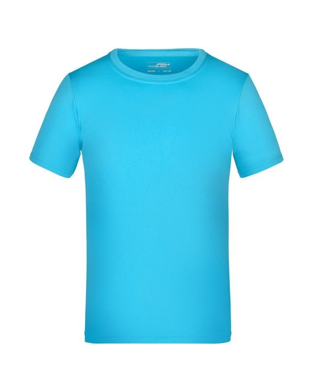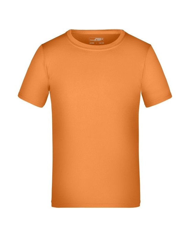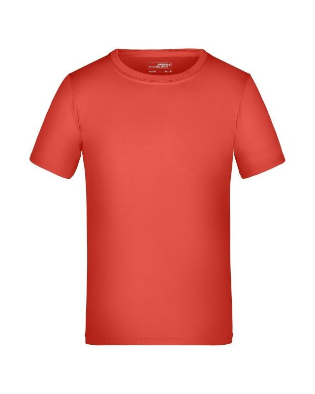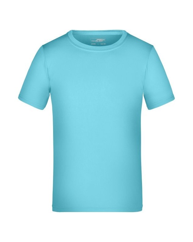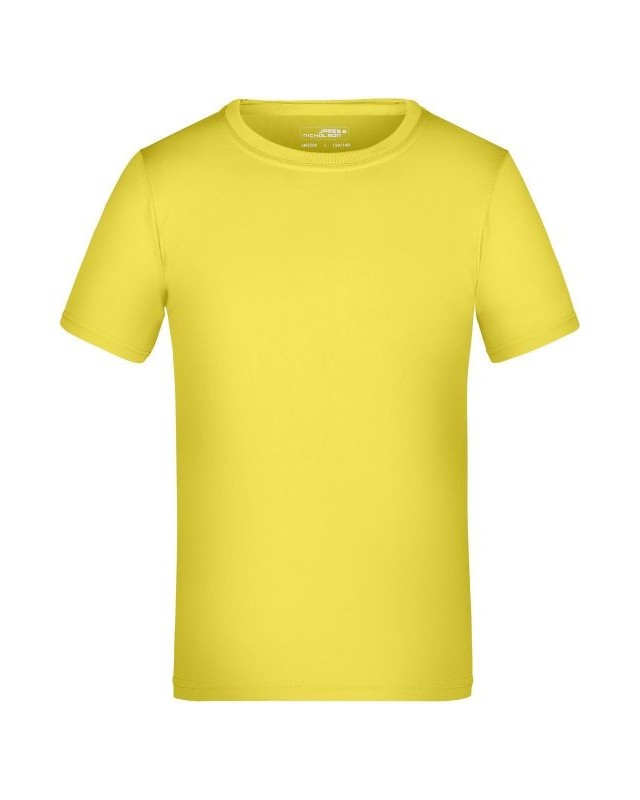 100% poliestere. T-shirt per tempo libero e sport single jersey con parasudore, cuciture doppie su spalle, collo e giro manica, traspirante, con regolazione umidità, asciugatura rapida. Tessuto esterno (150 g/m²). Manica corta, collo rotondo.