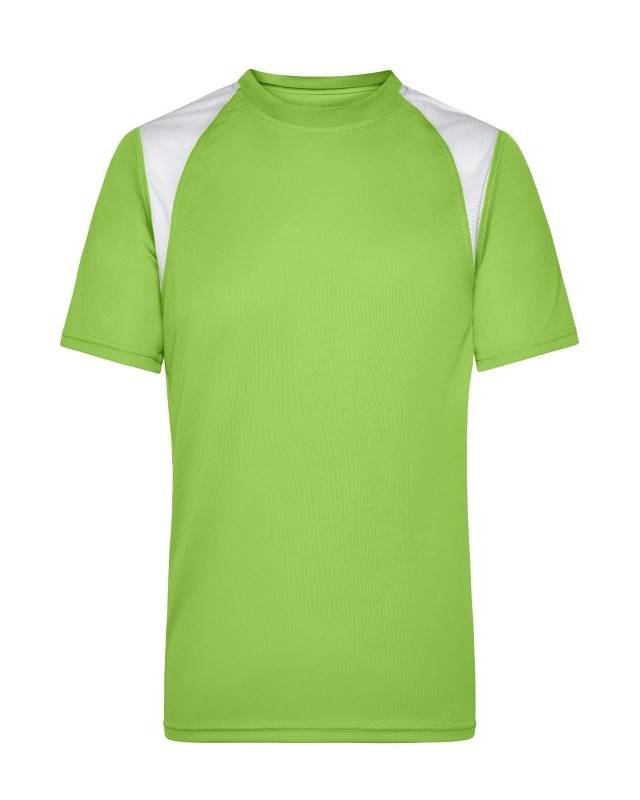100% poliestere. T-shirt maniche corte, tessuto leggero e comodo, regola l’umidità, ad asciugatura rapida. Cuciture piatte, bordini e transfer riflettenti, struttura con cuciture laterali, spalle con dettagli in contrasto.