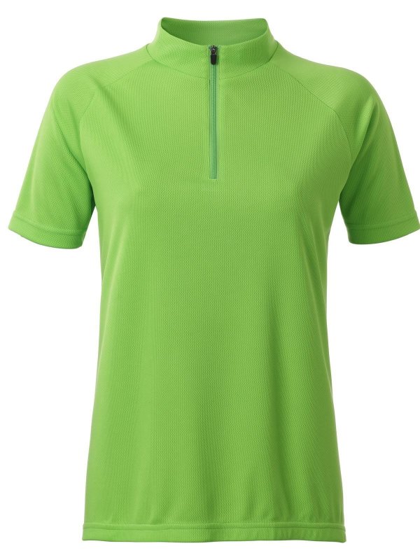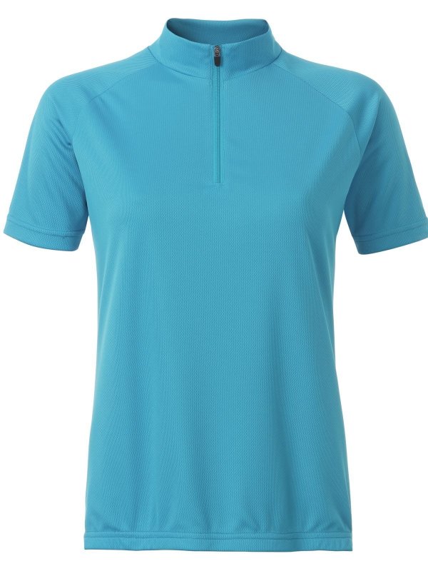 100% poliestere. T shirt basica donna biking, T shirt con regolazione umidità, Asciugatura rapida, Leggera e confortevole, Fit anatomico, Maniche raglan, retro esteso, Collo alto con zip, Tasca posteriore tripartita, Cintura elastica, -etichetta removibile, avvitata, Tessuto esterno (140 g/m²).