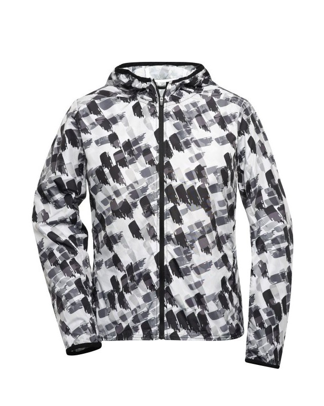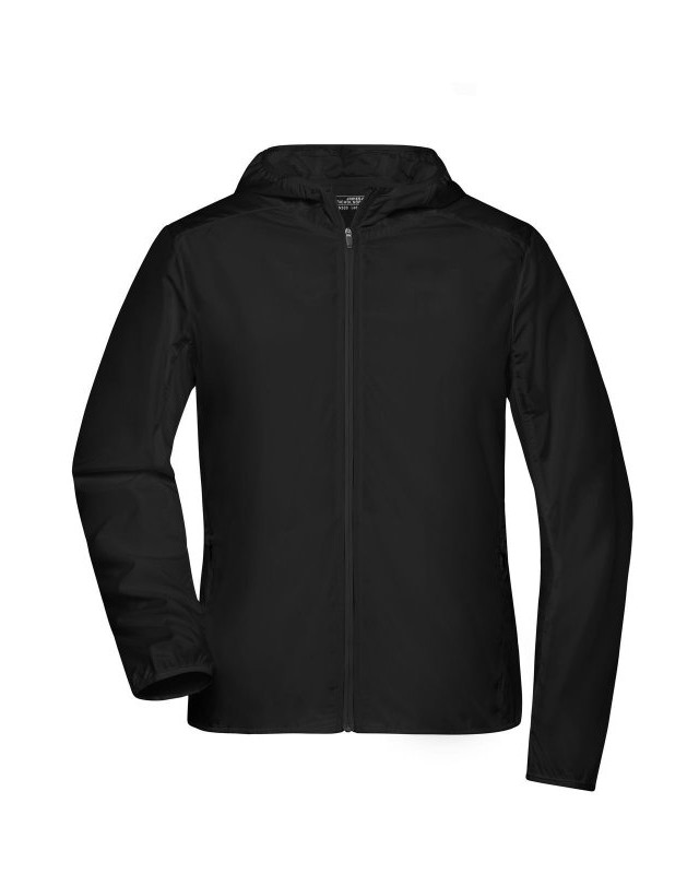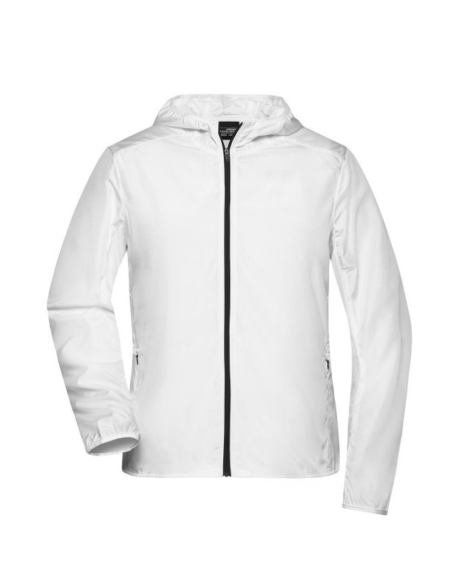 100% poliestere (56% riciclato). Giacca sportiva con cappuccio, in poliestere easy-care, antivento e idrorepellente, asciugatura rapida, zip con protezione per il mento, cappuccio e maniche sgarzati con banda elastica, due tasche laterali con zip, due tasche interne, zip YKK, leggermente sfiancata.