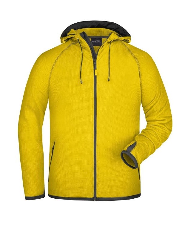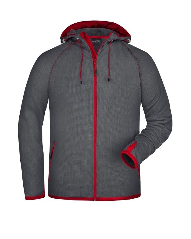 92% poliestere, 8% elastan. Giacca in pile con cappuccio Piacevole morbidezza e di facile manutenzione. All'esterno liscio con discreta stampa allover, all'interno pile felpato con motivo a rombi. Lunga zip frontale ricoperta con protezione per il mento, Cappuccio con cordino elastico e stopper, 2 tasche laterali con zip, Cuciture piatte a contrasto, anello per pollice. Tessuto esterno (280 g/m²).