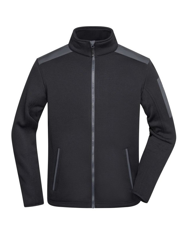 100% poliestere. Giacca in maglia in pile molto soffice e caldo Tessuto liscio e di facile manutenzione. All'esterno appare come lavorato a maglia, all'interno è molto soffice e morbido. Lungo zip frontale ricoperta con protezione per il mento, Colletto rigido, Passamaneria in tessuto sulle spalle, Tasca con zip sulla manica in tessuto , 2 tasche con zip davanti. Tessuto esterno (320 g/m²). Colletto alla coreana.