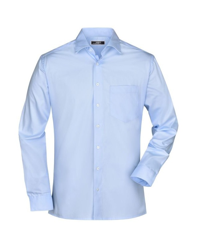 100% cotone. Camicia di facile stiratura Tessuto twill con finissaggio easy-care, Colletto new kent, bottoni tono su tono, Pence sulla schiena e taschino, 2 pieghe laterali sul retro, Taglio comodo. Polsini regolabili, lungo, pence sulla schiena.