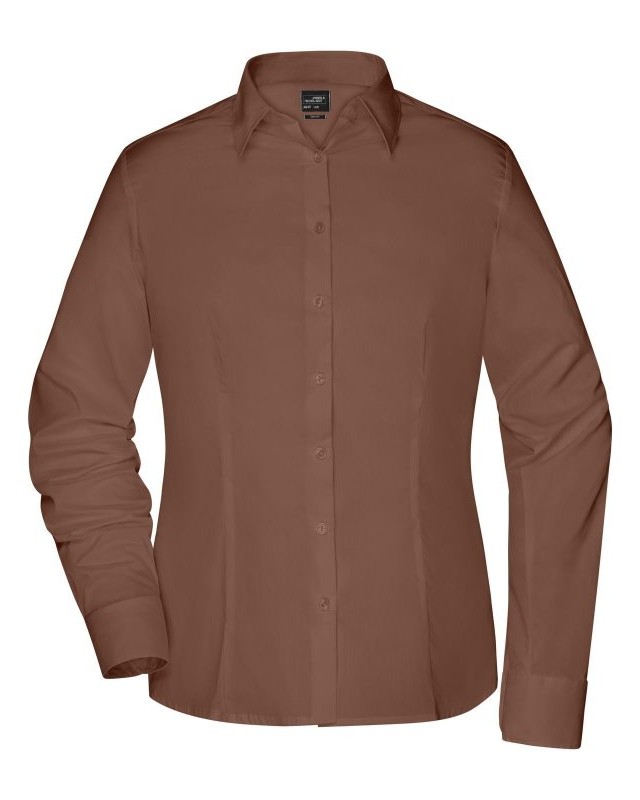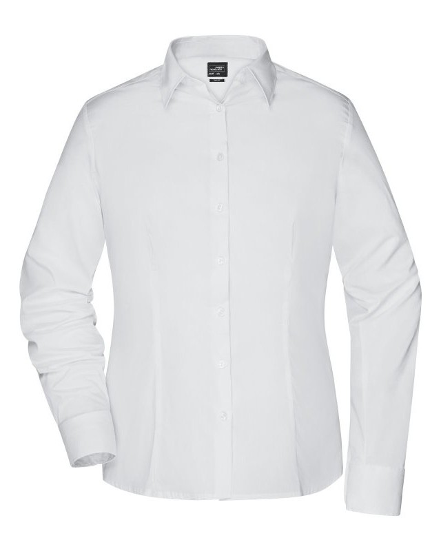 67% cotone, 30% poliammide, 3% elastan. Camicetta attillata in vita, alla moda Camicia elasticizzata, popline, facile da trattare, morbido colletto, slim- fit con balze davanti e dietro. Easy care, manica lunga.