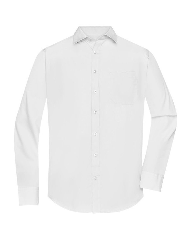 65% poliestere, 35% cotone. Camicia poplin easy care con orlo arrotondato, bottoni, taglio classico leggermente avvitato e taschino lato cuore.