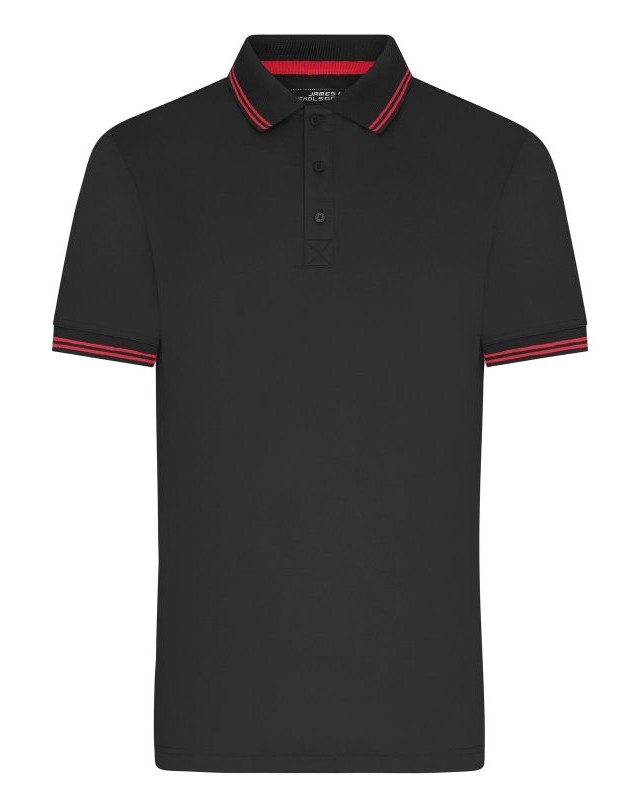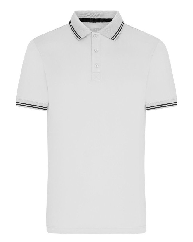 100% poliestere. Pratica polo in poliestere, traspirante, regola l'umidità e asciuga rapidamente, colletto e polsini in maglia con righe a contrasto, spacchi laterali, 3 bottoni