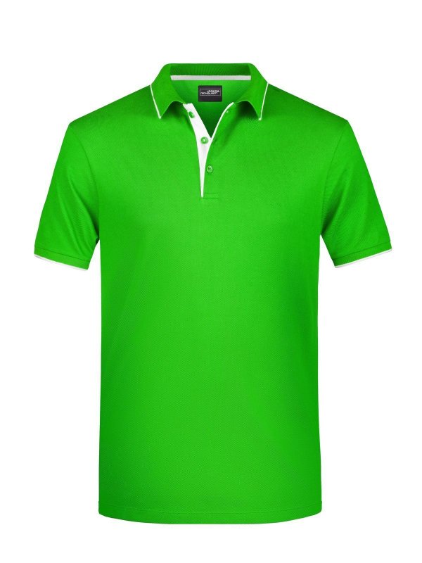 100% cotone pettinato ring-spun. Polo da uomo in tessuto piqué di alta qualità, fettuccia nel collo e nelle maniche a costine, righe a contrasto sul collo, colletto e abbottonatura interna con colori a contrasto, polsini tono su tono, spacchetti laterali, 3 bottoni.