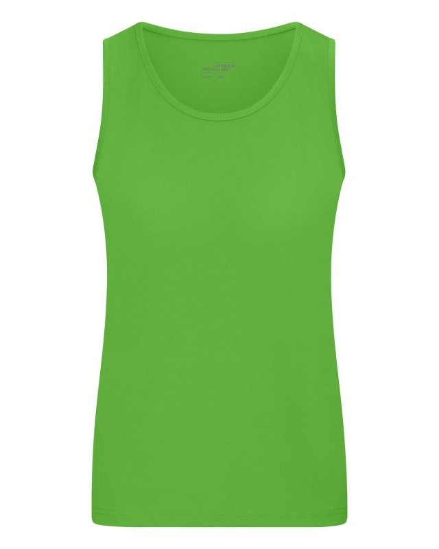 100% poliestere, 150 g/m2. Canottiera funzionale per lo sport e il tempo libero in single jersey, colletto e giromanica con bordino. Traspirante, con regolazione dell'umidità, ad asciugatura rapida. Leggermente sfiancata.