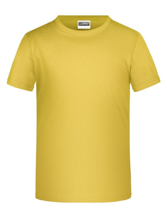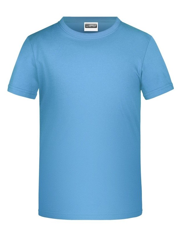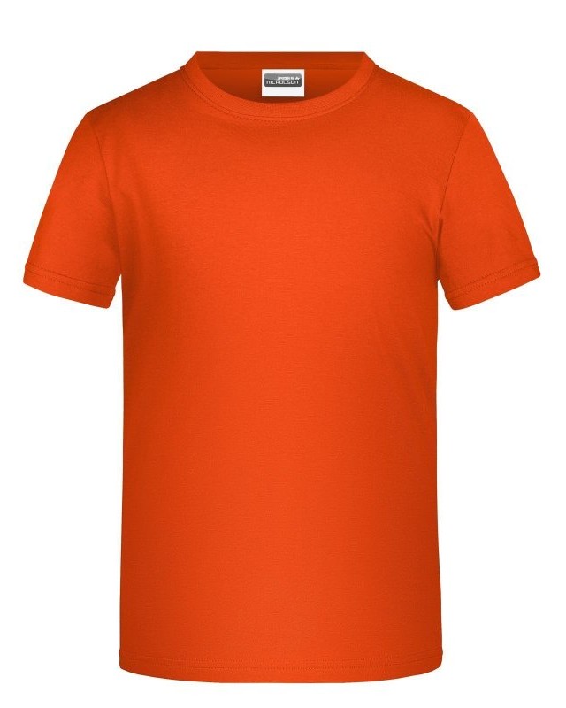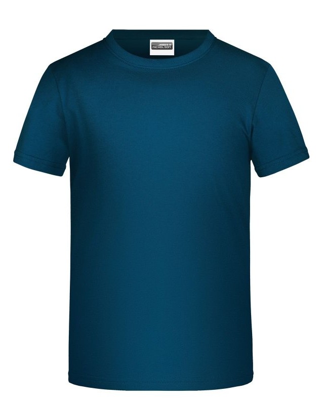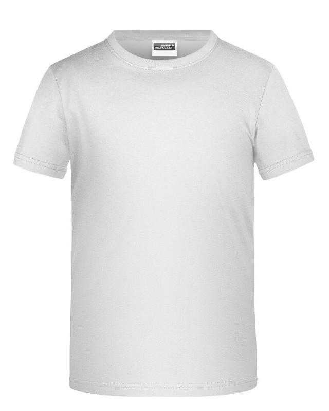 100% cotone. single jersey. T-shirt girocollo da uomo con elastico al collo in elastane, etichetta removibile. Busto tubolare.